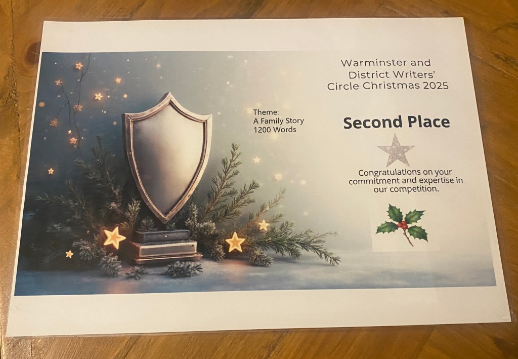 Really rather surprised – and, of course, delighted – for my story to have been placed second in my Writers’ Circle Christmas Short Story Competition.